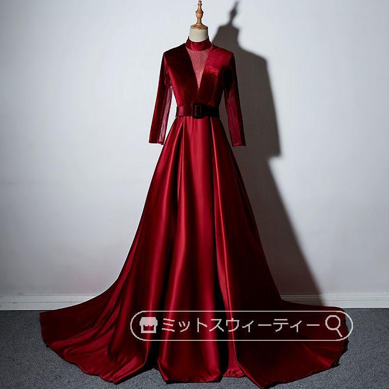 パーティードレス ロングドレス 長袖 カラードレス 赤 ワインレッド ベルベット 披露宴 発表会 演奏会 花嫁 大人 中高生 秋冬 コンクール フォマールドレス 上品 Cd1529 ミットスウィーティー 通販 Yahoo ショッピング
