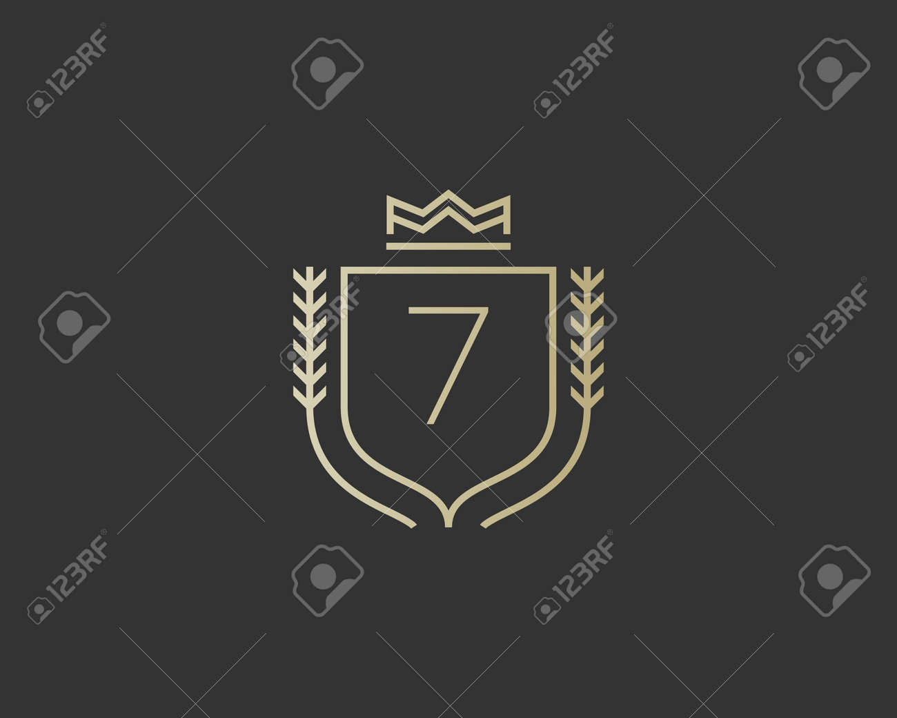 プレミアム番号 7 華やかです エレガントな数字の家紋アイコン ベクター デザイン 高級図シールド クラウン印 印刷のコンセプトやデザインの T シャツ のイラスト素材 ベクタ Image