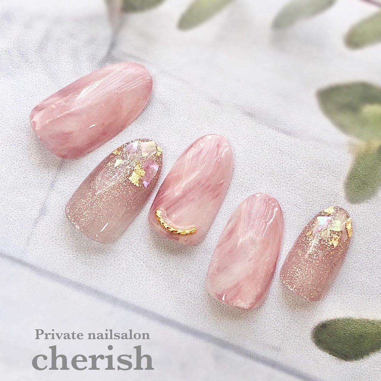 ピンクマーブルネイル ミチネイルのネイルデザイン集